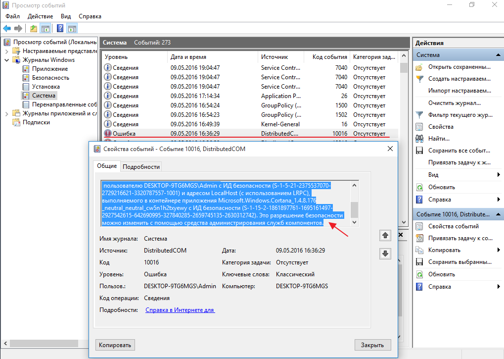 Спускаем ниже и вы можете наблюдать критическую ошибку, которая выделена красным цветом, открываем ее и видим, что параметры разрешений по умолчанию не дают разрешения локально …. Операционная система посчитала это за грубую ошибку, с которой желательно разобраться, как показано в логах с помощью администрирования служб компонентов