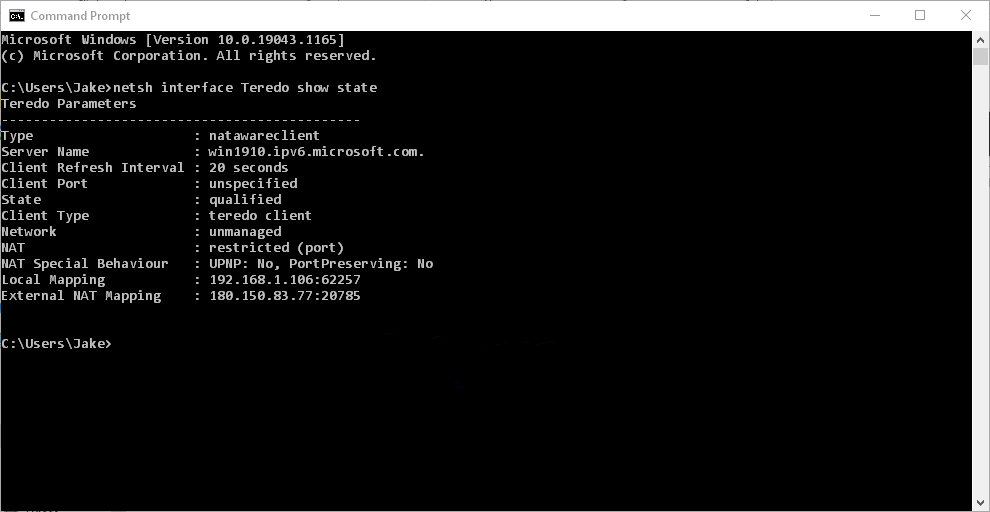- Если он возвращает «не удалось разрешить имя сервера», вероятно, у вас недопустимое имя сервера Teredo или Teredo блокируется.
