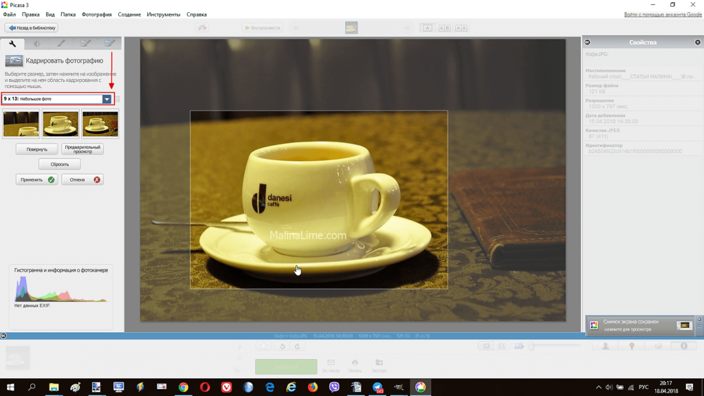 - Исходный файл остается в том виде, в каком он и был до кадрирования. Picasa с применяет изменения к копии.