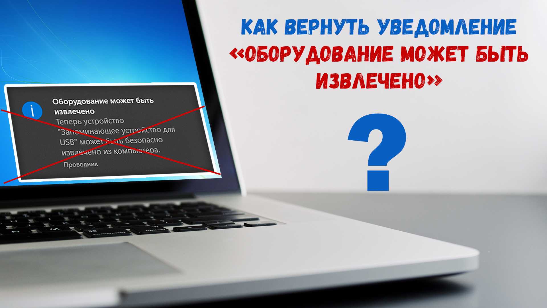 Нет сообщения «Оборудование может быть извлечено» возможно и по той причине, что отключены соответствующие уведомления.