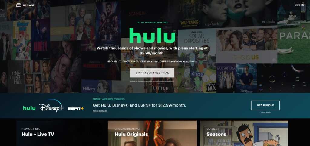 Hulu – это сервис потокового видео, который предлагает высококачественный видеоконтент от телевизионных шоу до полнометражных фильмов. За небольшую ежемесячную плату пользователи получают доступ ко всему на Hulu и могут транслировать столько, сколько захотят.