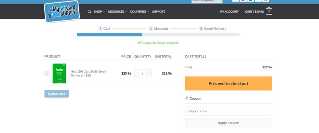 Здесь я покупаю $ 25 Hulu подарочная карта на MyGiftCardSupply