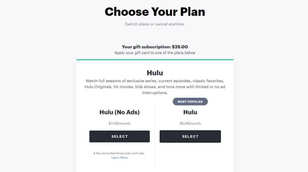 Первое решение, которое вам нужно сделать, является ли вы хотите купить план без рекламы, или самый популярный план для Hulu, тот, включая объявления. Решение полностью за 1000. Объявления могут раздражать, но все же, разница в цене большая, так что если вы действительно ненавидите объявления, это может быть лучшее значение для покупки плана, включая объявления.