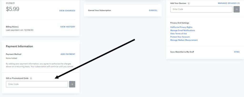 Если вы достигли этого шага, вы успешно создали учетную запись Hulu и заплатили за нее с помощью подарочной карты. Когда вы осушенных подарочная карта, вы можете просто купить новую подарочную карту в любое время и добавить его на свой счет в нижней части страницы счета Hulu (проверить изображение ниже).