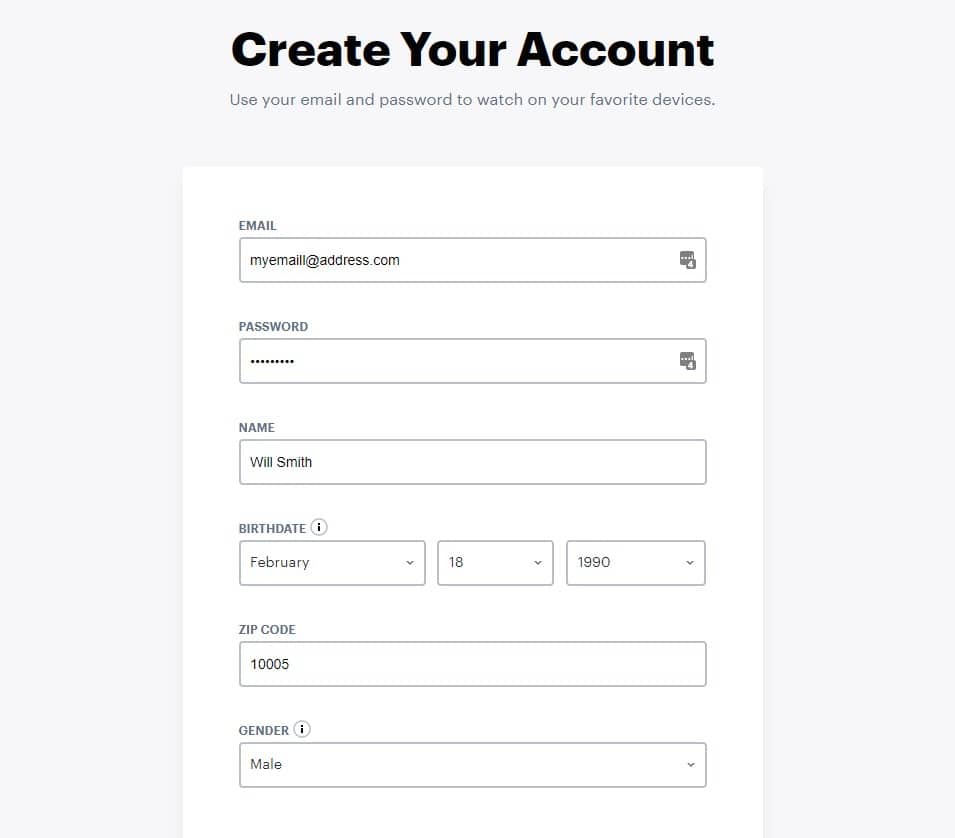 При входе данных, единственное, что важно, чтобы ввести почтовый индекс действителен в Соединенных Штатах (10005 является хорошим вариантом). Когда вы ввели свои данные, вам нужно только подтвердить свою подписку, и вы будете хорошо идти