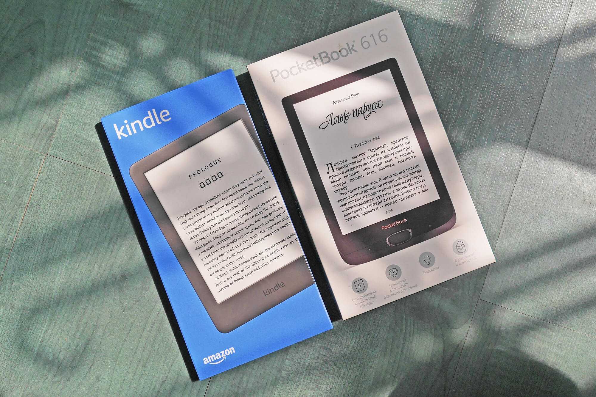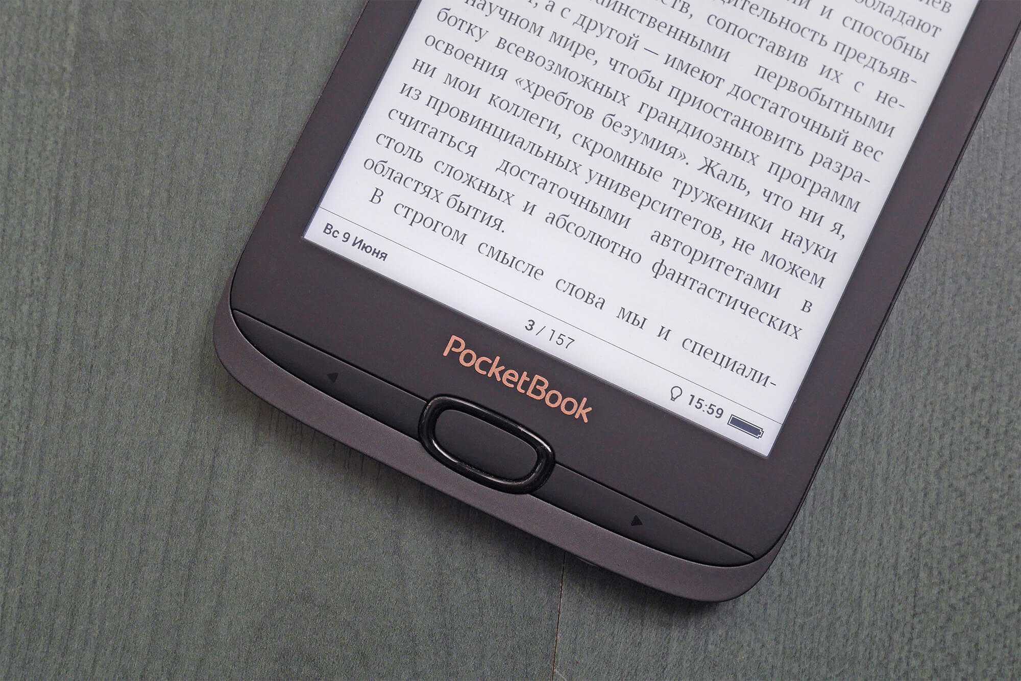 Но добавить можно очень многое – если иметь на руках оба устройства и тщательно их сравнить. Например, оказывается, что Kindle шире на полсантиметра. При одинаковой диагонали экрана – 6 дюймов. Казалось бы, мелочь, но из-за этого ридер менее удобно обхватывать рукой. PocketBook удерживать таким образом гораздо комфортнее.