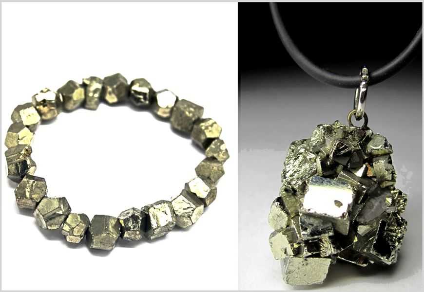 Ювелирные украшения из кошачьего золота изготавливали с древности. Пиритовые изделия выглядят так же эффектно, как золотые: за счет блеска и переливания. Кроме того, из пирита изготавливают различные аксессуары: оправы для зеркал, заколки, гребни для волос, шкатулки, статуэтки, портсигары.