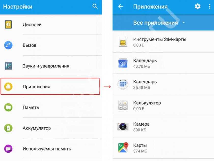 1. Переходим в раздел «Приложения» или «Установленные программы».