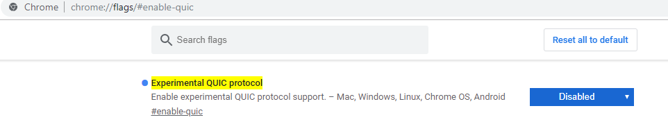 • Откройте браузер и введите команду chrome://flags/#enable-quic;