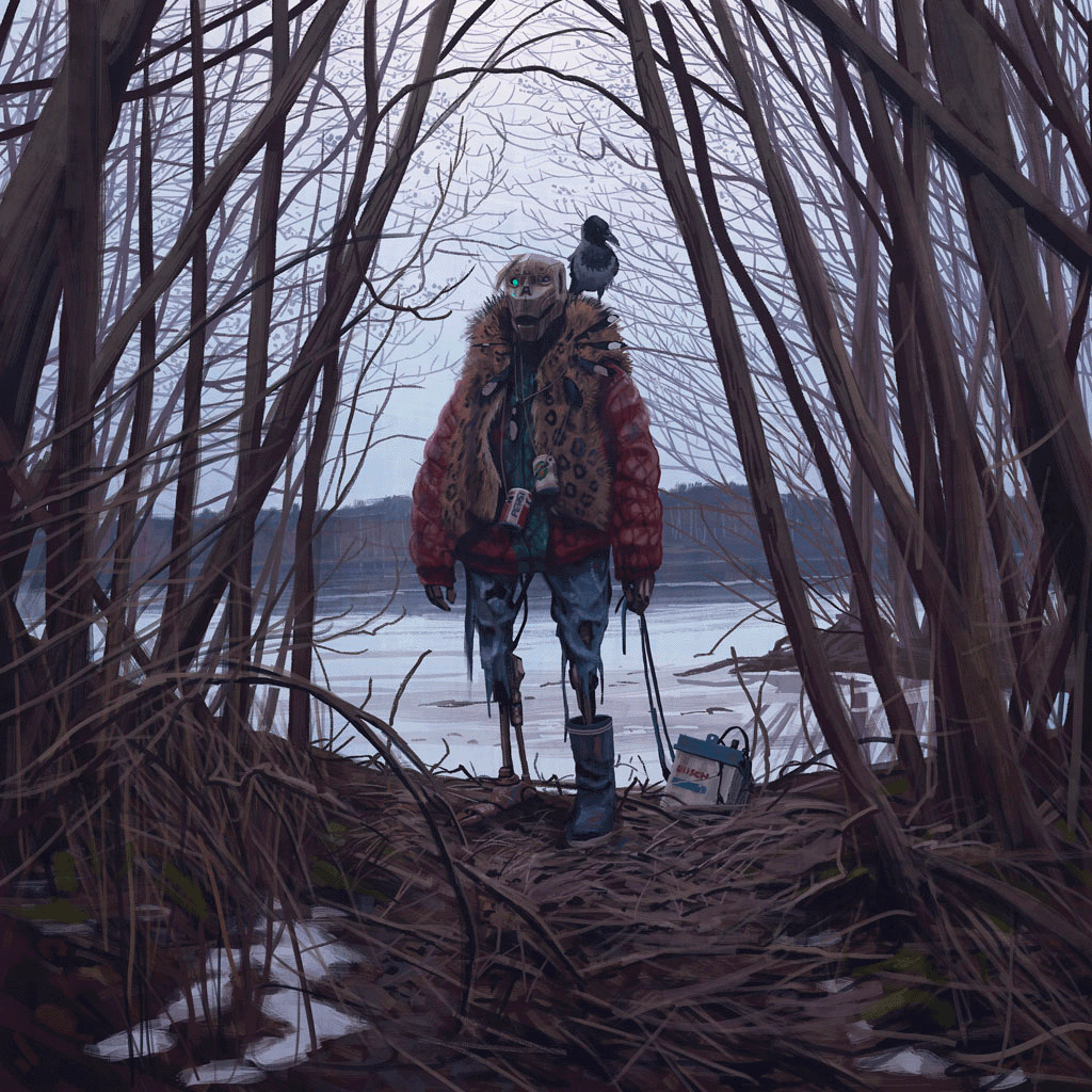 В книге Столенхага «Вещи из потопа» — целая галерея образов, построенных на этом пугающем диссонансе. Потасканные роботы в диких лесах и на необжитых берегах ведут себя, : одеваются в шкуры и перья, носят ритуальные маски и копья.