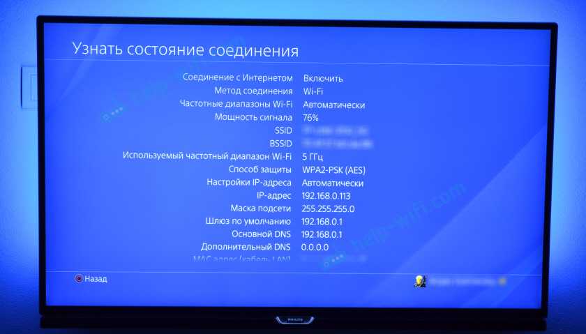 Чтобы посмотреть сведения о подключении (к какой сети подключена игровая консоль, в каком частотном диапазоне, какой IP-адрес ей присвоил роутер, мощность сигнала и т. д.), в разделе «Сеть» выберите пункт «Узнать состояние соединения».