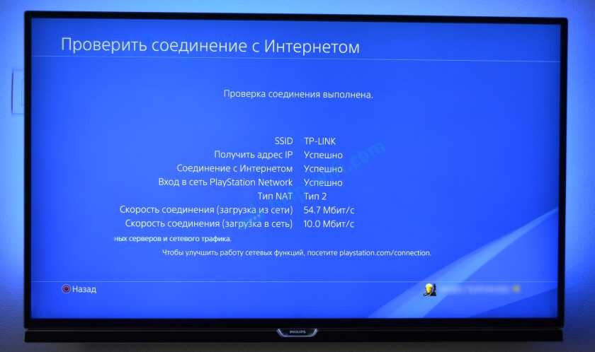 Пункт «Получить IP-адрес» и «Соединение с Интернетом» – «Успешно» говорит о том, что игровая приставка подключена к роутеру и есть доступ к интернету. У вас может быть не выполнен вход в сеть PlayStation Network. Скорость подключения к интернету указана приблизительно. Я провел через Speedtest, в веб-браузере на PS4, так там результаты намного выше. От сервера зависит. Хотя пинг почему-то у меня намного выше, чем на iPhone. На PS показывает около 20 (при проверке через Speedtest), а на iPhone пинг 2. Оба устройства подключены к сети в диапазоне 5 ГГц.