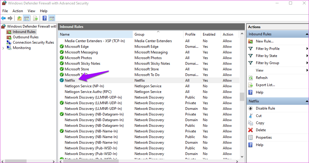 Вы увидите список приложений с двумя флажками справа. Один предназначен для публичных сетей, а другой — для частных сетей. В зависимости от того, что вы используете для потоковой передачи Netflix, включите один или оба. Я не могу, потому что мой антивирус управляет настройками. Если ваш аналогичный, вам нужно «разрешить» Netflix через антивирусное приложение. Шаги должны быть более-менее похожими.
