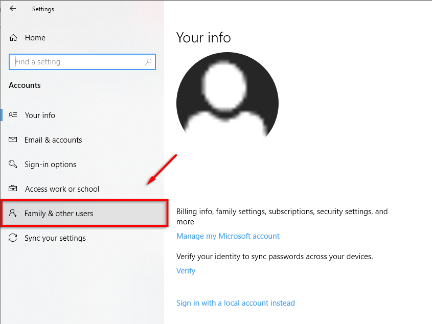- Щелкните и выберите Ваша учетная запись в раскрывающемся меню.