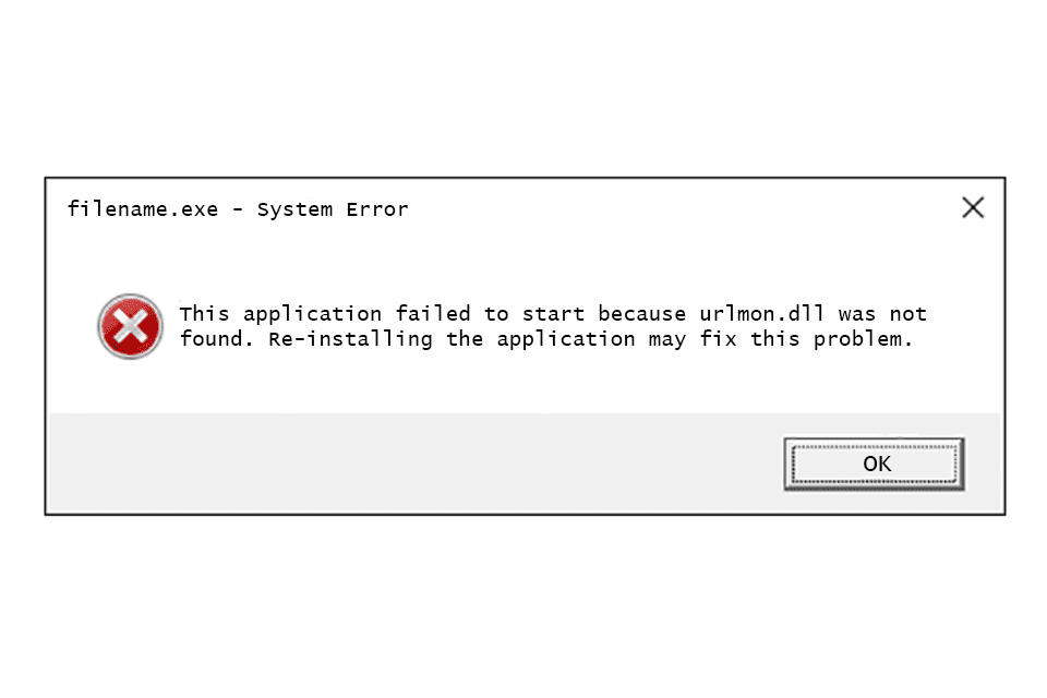 - «Это приложение не запустилось из-за того, что Urlmon.dll не была найдена. Переустановка приложения может исправить эту проблему.»