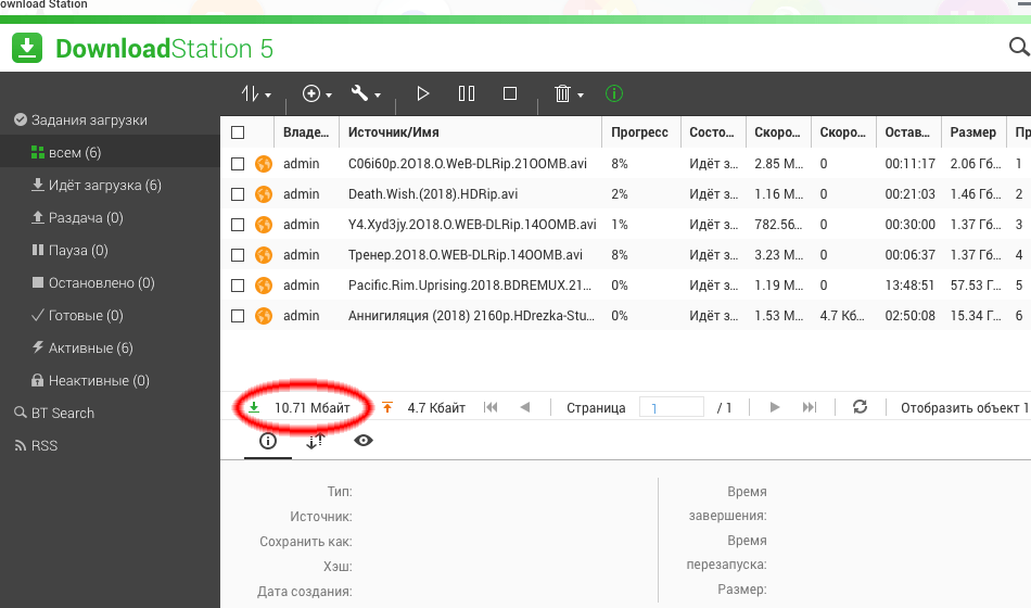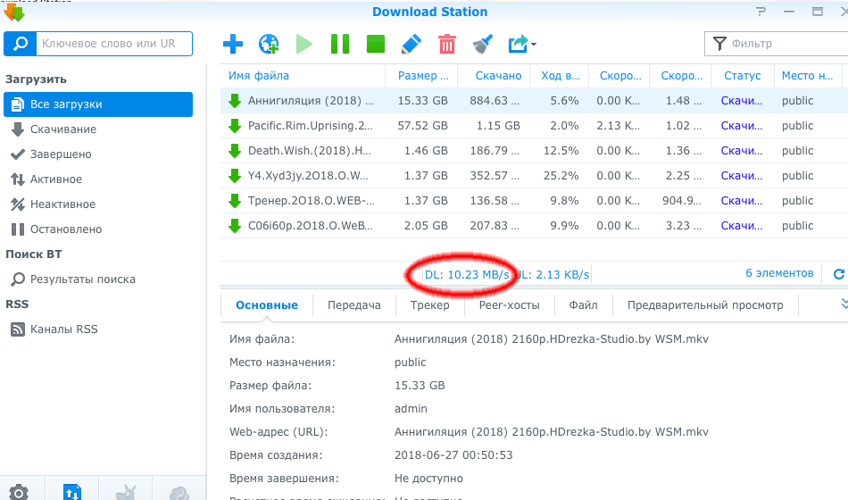 Оба NAS-а имеют собственные менеджеры закачки торрентов с поддержкой магнитных ссылок и шифрования соединения. Такие провайдеры, как Ростелеком, не ограничивают по скорости трафик внутри своей сети, поэтому даже на минимальном интернет-тарифе, вы можете скачивать торренты на максимальной пропускной способности порта — в 100 мегабит в секунду.