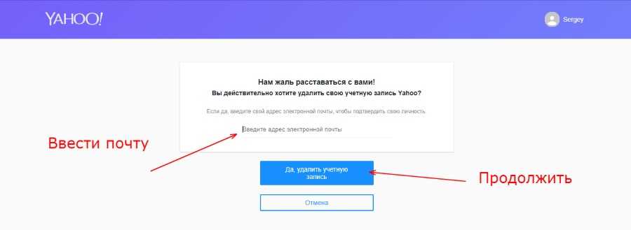 Удалить электронную почту Yahoo