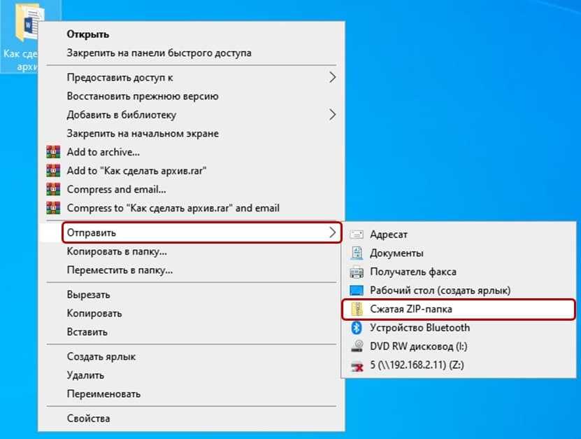 Архивация папки с файлами штатными возможностями Windows