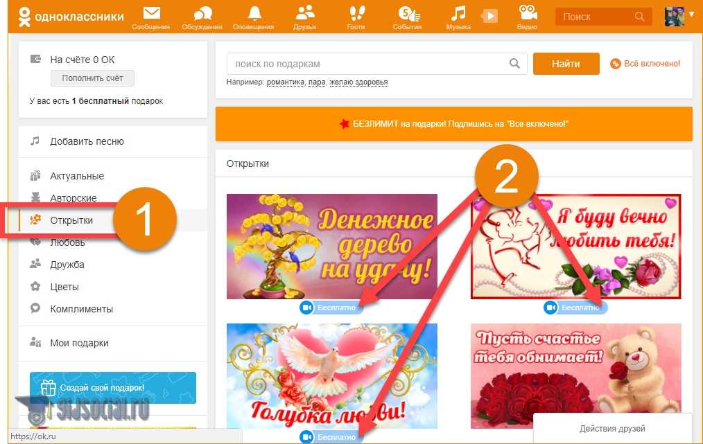 Как подарить открытку другу бесплатно в «Одноклассниках»?