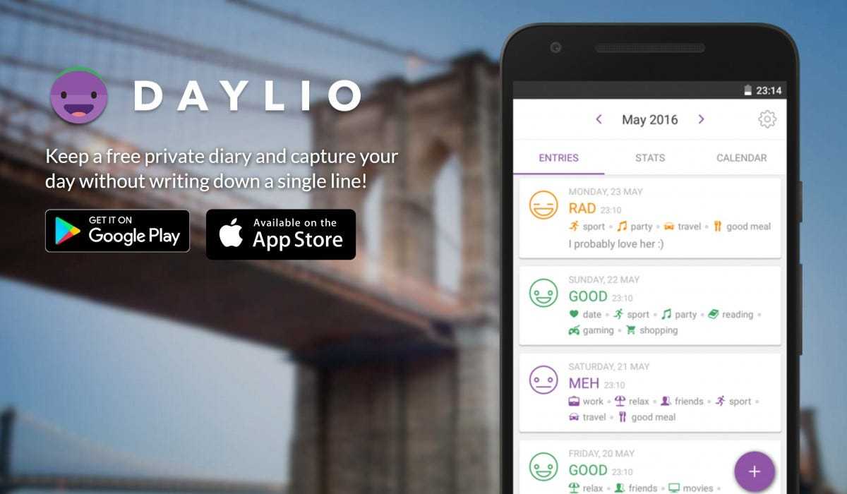Daylio (Бесплатно, $ 2,99 / в месяц или $ 23,99 / в год) позволяет легко отслеживать ваше настроение. Он также позволяет вам добавлять текущие действия и делать регулярные (но небольшие) записи в журнале. Daylio имеет двухэтапный процесс ввода, в котором вы выбираете смайлики, которые лучше всего соответствуют вашему настроению в течение дня (для которых вы можете настроить внешний вид и названия), а затем быстро делаете заметки о том, что вы сделали (с помощью выбор, как работа, уборка, игры, отдых, свидание, спорт, вечеринка и многое другое). Это красочный ежедневник, который отслеживает ваши лучшие дневные полосы, среднее месячное настроение и другую полезную статистику. Вы также можете заблокировать доступ к приложению с помощью PIN-кода.
