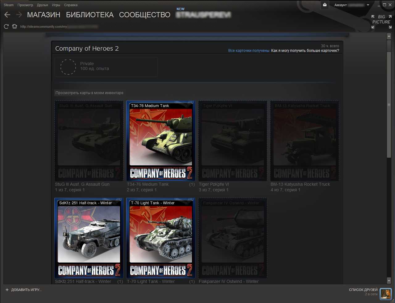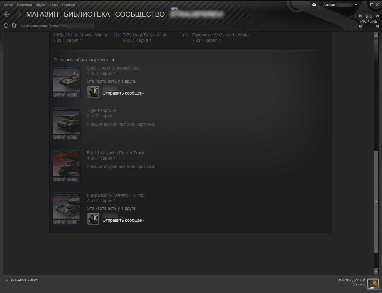 Как позже выяснилось, карточки бывают не только из игр Company of Heroes 2 и Borderlands 2. Такие игры как: Magicka, Half Life 2 и Dota 2 тоже имеют свои значки и список игр будет постоянно увеличиваться. С полным списком игр, имеющих карточки Steam, Вы можете ознакомиться по этой ссылке.
