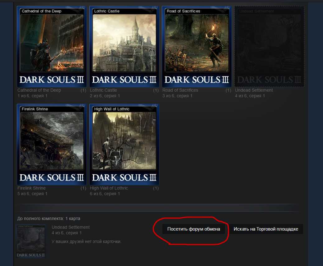 3) Обменивайтесь карточками с пользователями Стим. Очень часто бывает, когда у вас есть карточка, которую хочет ваш друг, а у него имеется то, что нужно вам. В разделе значка, вы можете просмотреть, есть ли у ваших друзей недостающая для создания набора карточка. Даже если у ваших друзей ее не окажется, вы можете попытать удачу на форуме обмена. Для этого напротив карточки нажмите «Посетить форум обмена», после чего выберите любую подходящую тему, где сможете обсудить детали сделки.