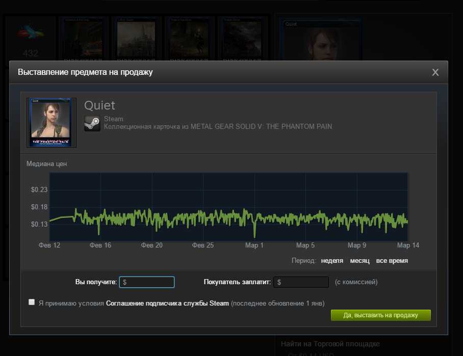 2) Коллекционные карточки можно покупать на торговой площадке. Для этого в меню инвентаря выберите карточку из набора, нажмите «Прогресс значка». В появившемся меню вы увидите все уже имеющиеся и недостающие карточки. Чтобы купить карточку, нажмите «Искать на Торговой площадке», после чего вас перекинет на страницу магазина, где вы и сможете приобрести желаемый предмет.