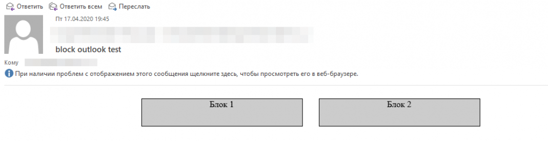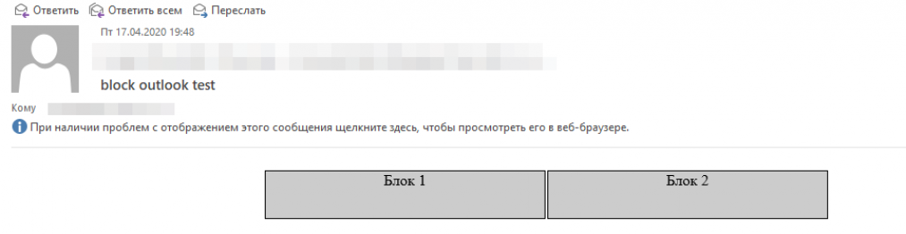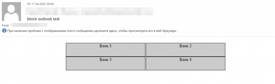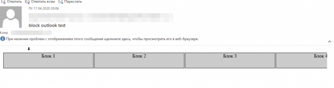 Но не в Outlook. Он не понимает, как работать с такими блоками, и покажет следующее: