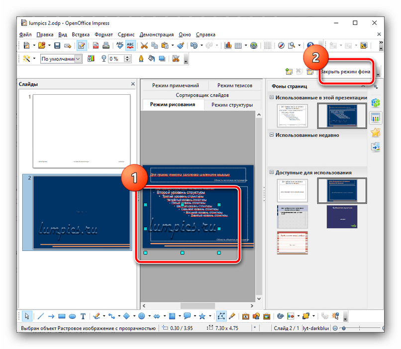 Настройте размер и положение элемента, а после внесения всех необходимых правок нажмите «Закрыть режим фона».