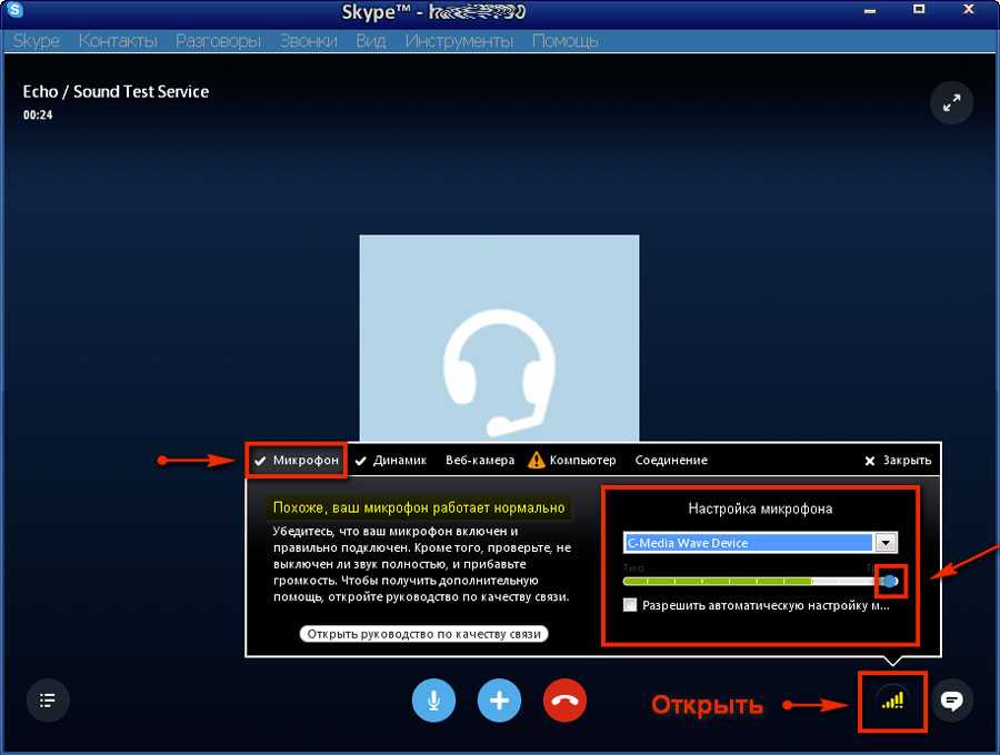• Насколько хорошо Вы будете слышать собеседника, у которого микрофон работает нормально;