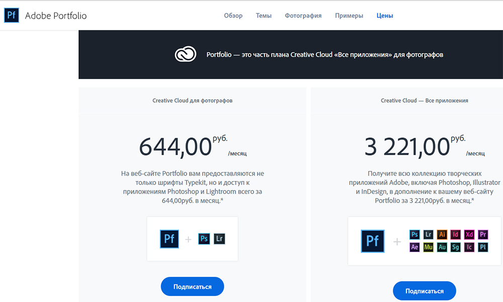 Сервис является фактически продолжением Behance.net и частью Creative Cloud. При создании сайта проекты будут перемещены автоматически, а публиковать свои работы в портфолио можно сразу из программ пакета Adobe. Есть множество настраиваемых шаблонов, можно подключить своё доменное имя.