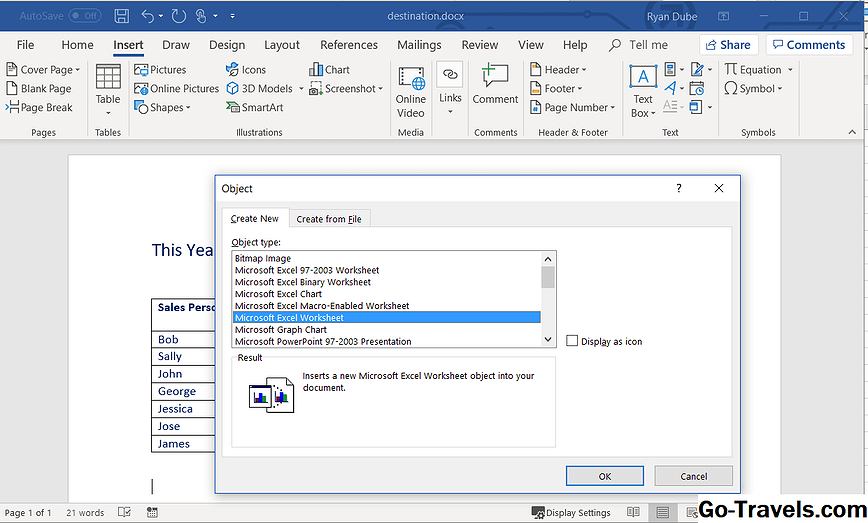Процесс внедрения листа Excel в документе Word по существу совпадает с привязкой к листу Excel. Для этого требуется несколько дополнительных кликов, но он выводит все данные из рабочего листа в ваш документ, а не только выбранный диапазон.