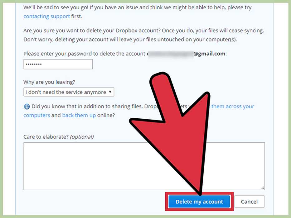 Примечание: После удаления учетной записи Dropbox вы больше не сможете синхронизироваться с Dropbox на компьютере, телефоне или даже планшете. Следовательно, предыдущие общие файлы не будут доступны.