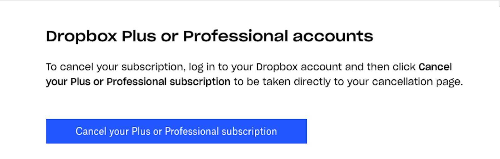 Перейдите на страницу help.dropbox.com/accounts-billing/cancellations-refunds/cancel-subscription , прокрутите страницу вниз и выберите Отменить подписку Plus или Professional .