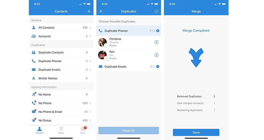 К таким методам относится использование программ Smart Merge, Erased Contacts и некоторых других. Первая представляет собой приложение, позволяющее избавиться от дубликатов записей и нежелательных контактов. Более того, она помогает полностью очистить адресную книгу. Smart Merge очень проста в использовании.