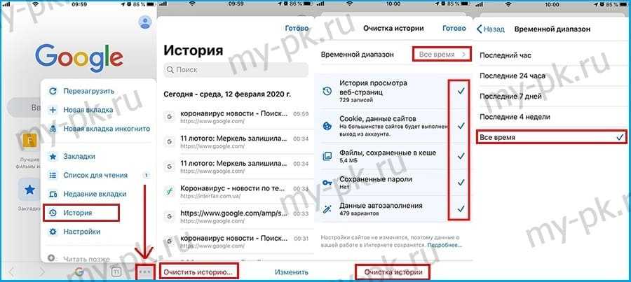 Через браузерные конфигурации (для сторонних браузеров). В зависимости от самой программы названия и расположение определенных разделов отличаются. Рассмотрим инструкцию для Google Chrome: Нажмите на «три горизонтальные точки на нижней панели» → «История» → «Очистить историю» → Выберите «Временной диапазон: Всё время» → «Очистка истории». Подтвердите свои действия!