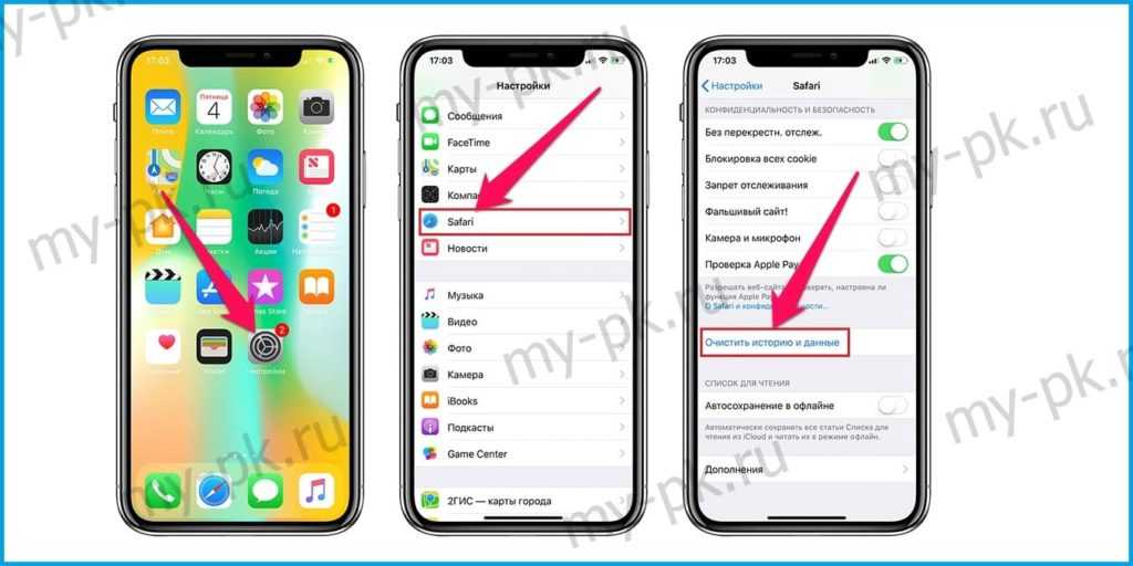 С помощью системных параметров (для Safari). Здесь всё несколько проще, следуйте инструкции: открываем «Настройки» → «Safari» → «Очистить историю и данные»