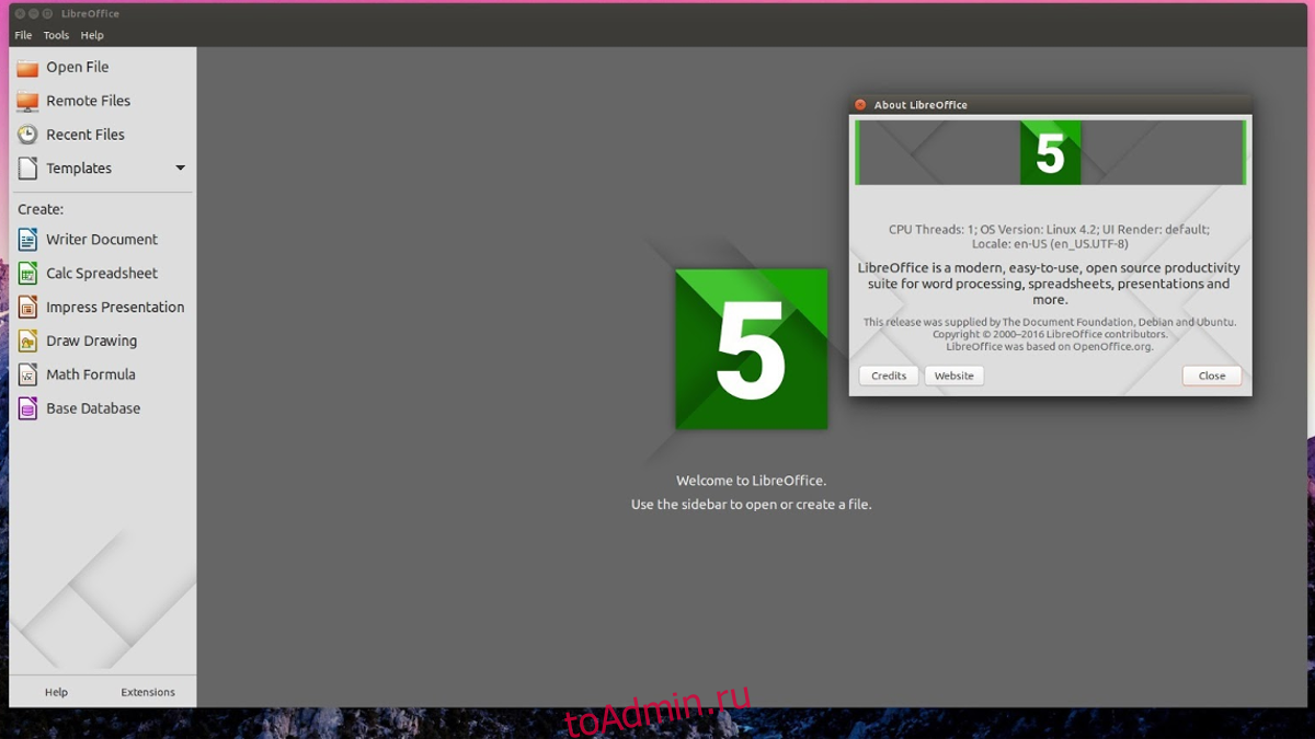 Установка Libreoffice в Ubuntu 16.04