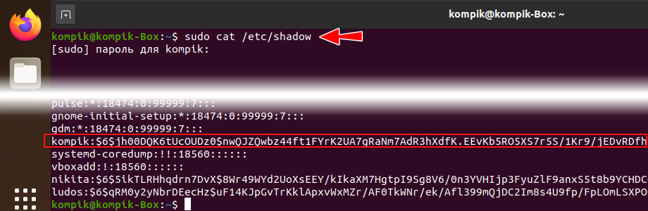 Сведения обо всех пользователях хранятся в нескольких файлах, с содержимым которых мы познакомимся на примерах. Для вывода содержимого этих файлов в терминал мы будем использовать команду cat, выполненную с правами суперадминистратора.