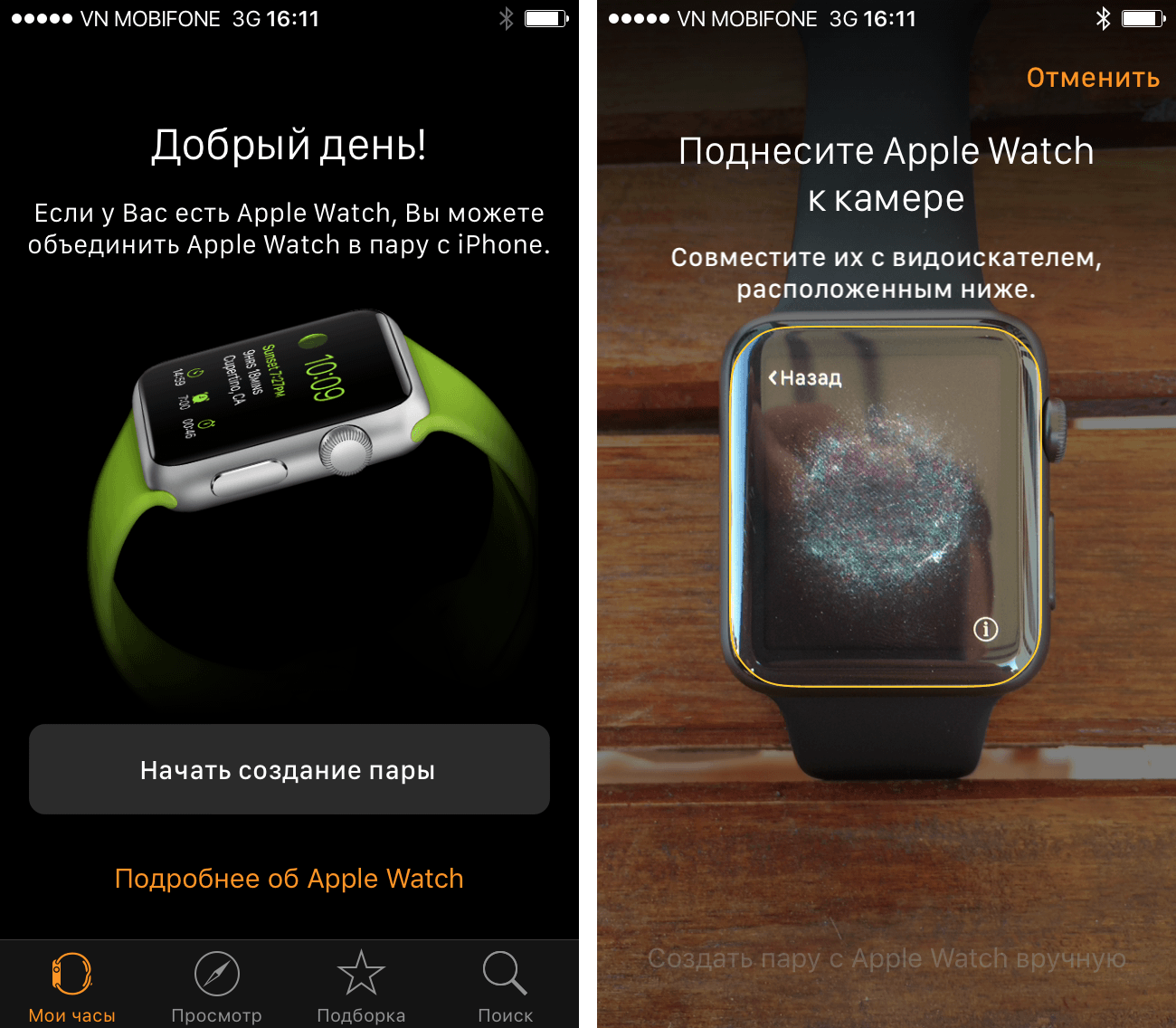 Вам понадобится заряженные Apple Watch, телефон с запущенным Bluetooth и приложением Watch. Сопряжение устройств весьма интуитивно: часы и телефон сами подсказывают, что делать и куда нажимать. Чтобы подключить Apple Watch к iPhone, нужно сделать следующее: