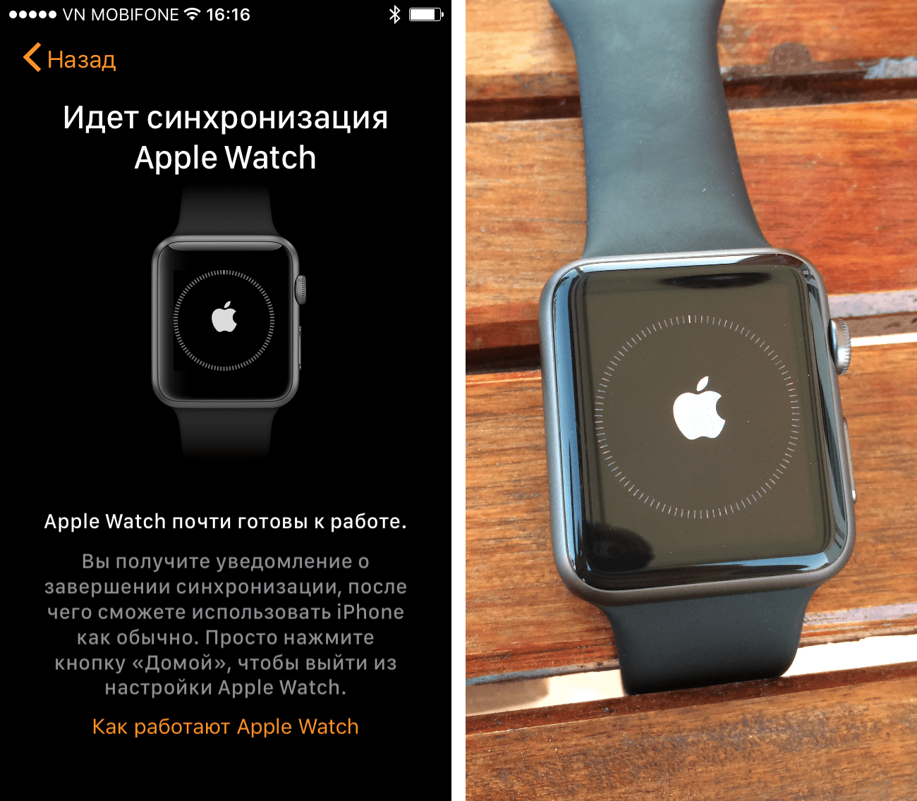Продолжительность этого процесса зависит от объема синхронизируемых данных. Устройства должны находиться близко друг к другу, пока вы не услышите сигнал и не почувствуете легкую пульсацию Apple Watch.