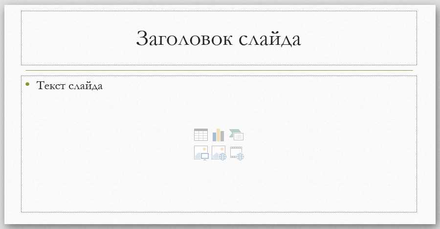 Автоматически программа подтянет универсальный слайд с полем для заголовка вверху и полем для добавления текста/изображения/видео/ диаграммы/SmartArt фигур/таблиц т.д. При чем, Вам не нужно искать вкладку, через которую нужно добавить тот или иной элемент (хотя можно и так заморочиться), достаточно просто кликнуть на данном слайде по соответствующей иконке, после чего перед Вами откроется соответствующее меню. В целом, вся панель управления полностью аналогична панели управления в Word.