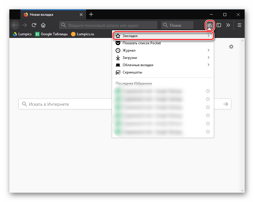 Если говорить о расположении закладок в самом браузере, то для них отведен отдельный раздел. Перейти к нему можно следующим образом: