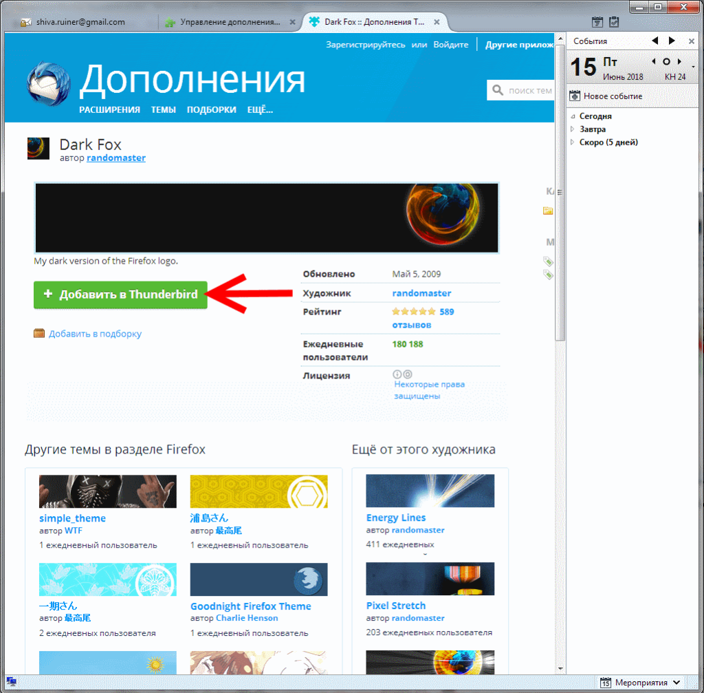 Найдя подходящую тему, кликните по ее названию и на следующей странице нажмите кнопку «Добавить в Thunderbird». Не забудьте также нажать кнопку «Разрешить» во всплывающем окне.