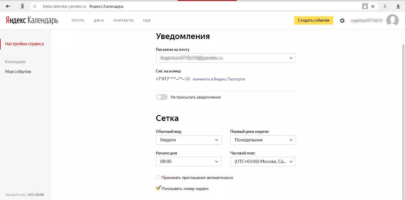 - В разделе «СМС на номер» указан тот телефон, на который будут приходить о событиях (если вы их подключите). Это всегда номер, указанный в Яндекс.Паспорте , его можно изменить, перейдя в этот сервис;