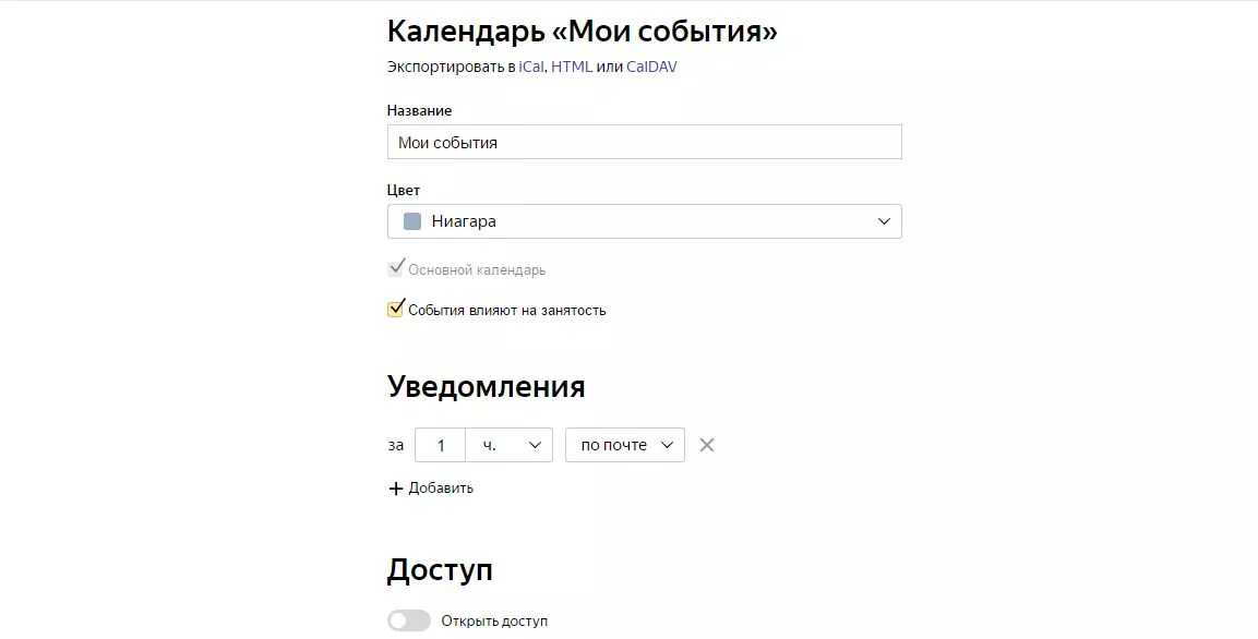 - Укажите, хотите ли вы автоматически принимать приглашения на события, отмеченные в Яндекс.Календарях других людей;