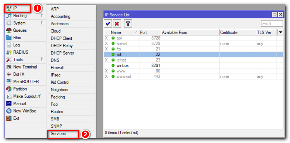 - Port: 8291 – номер порта, который использует сервис. При желании можем указать свой;