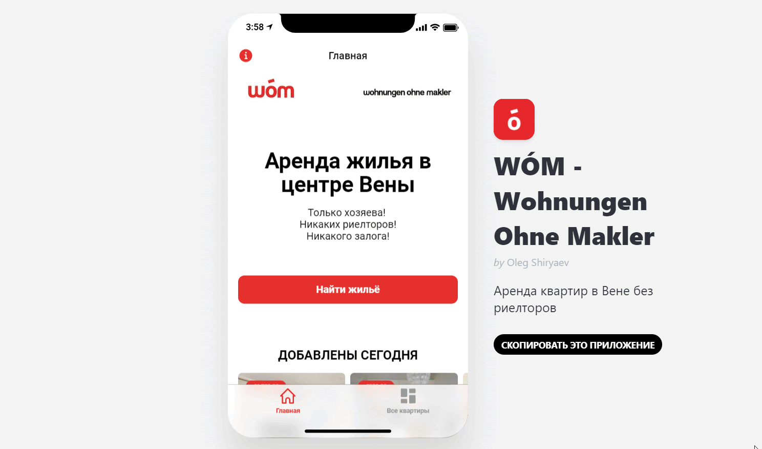 WOM. Аналог Airbnb для поиска недвижимости в Вене