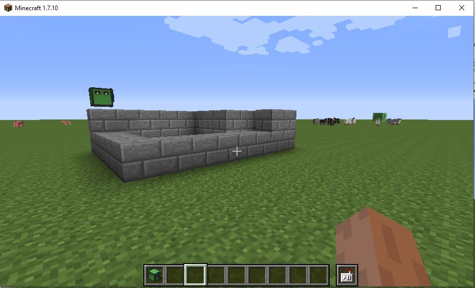 Программируем черепаху и запускаем ее на выполнение кода. Должно получиться высокое здание без окон и дверей и даже без крыше. Хорошей чертой Майнкрафта является наглядность! Приятно смотреть как все строиться, а когда допускаешь ошибку, то она в прямом смысле слова бросается в глаза.