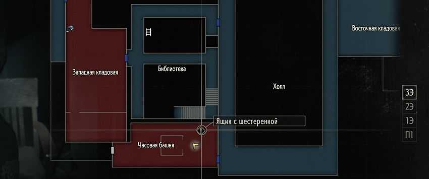 Вам следует по лестнице подняться на третий этаж и наверху забрать предмет под названием «Большая шестерёнка» (она будет лежать внутри «Восточной кладовой»). Только учтите, что шестерёнка занимает два слота, поэтому перед тем, как отправляться за ней, убедитесь, что есть свободное место для предмета.